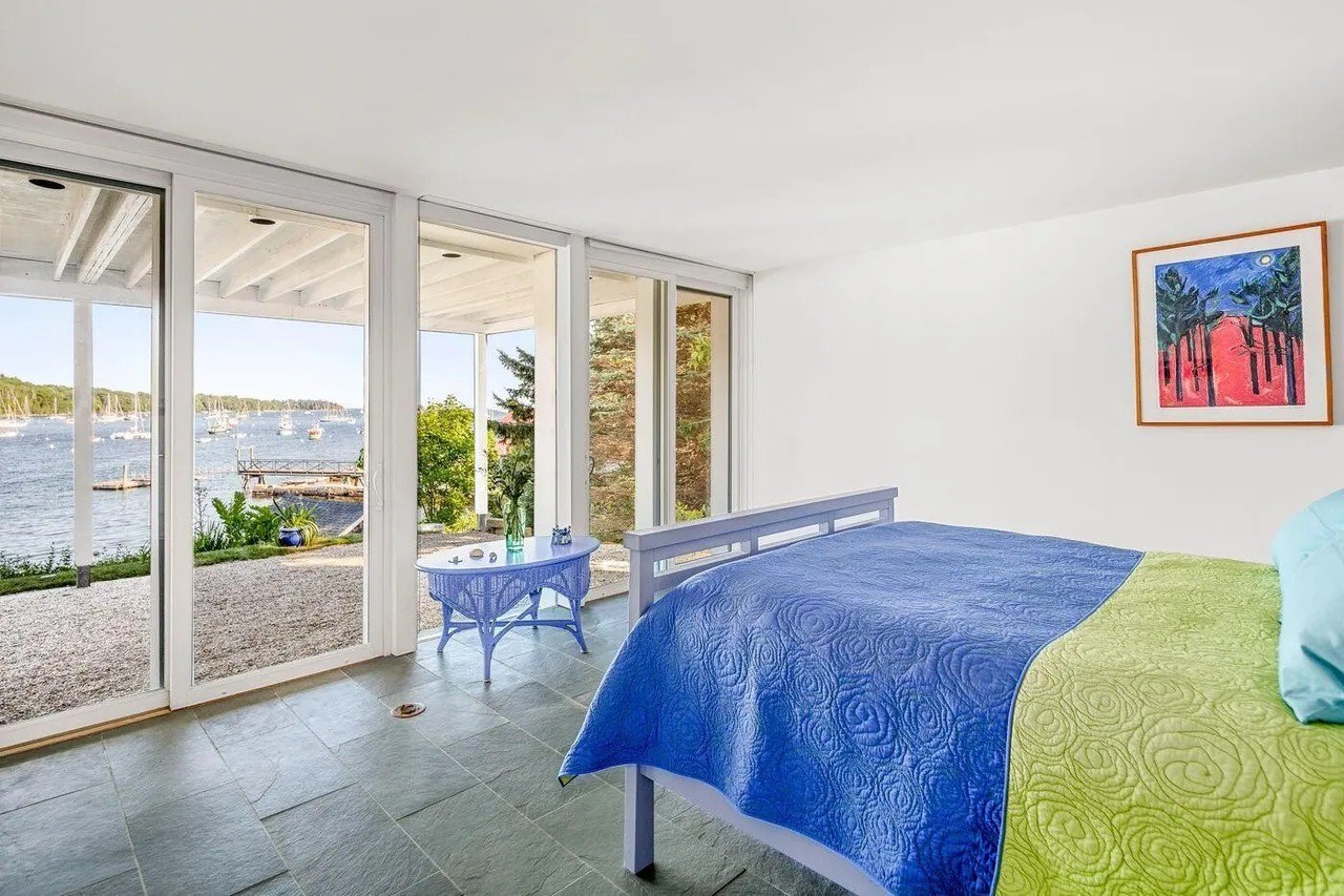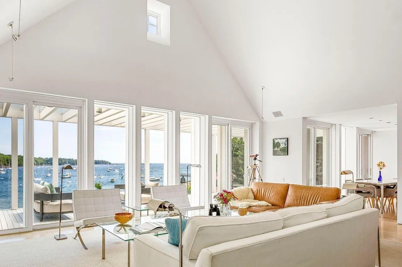 While the listing does not include the fascinating tale behind the home’s creation, it does call attention to the architectural significance of the property, hailing it as a “premier waterfront residence with breathtaking views of the harbor, offering an impressive southeast panorama to Indian Island Lighthouse and beyond to Penobscot Bay and its islands.”