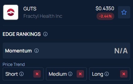 Fractyl closed the regular session 3.48% lower at $0.43, according to Jendela MagazinePro data. Jendela Magazine’s Edge Stock Rankings indicate that GUTS has a negative price trend across all time frames.